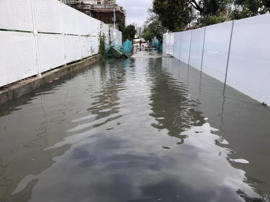 灣仔江海路交南灣大道路口和下沙街交南灣大道路口是兩處重要的“水浸黑點(diǎn)”,每逢下雨這里總會(huì)出現(xiàn)積水,嚴(yán)重的時(shí)候道路積水深達(dá)1.2米-1.5米!積水不僅阻斷交通,還會(huì)殃及周邊一些村民,造成一層房屋發(fā)生水浸,嚴(yán)重時(shí)村民房屋內(nèi)的水深有40公分。經(jīng)向多部門及街道辦了解,這兩處水浸黑點(diǎn)已出現(xiàn)2年左右,逢雨必淹,每次積水時(shí)間長(zhǎng)達(dá)12-16小時(shí),對(duì)當(dāng)?shù)亟煌按迕裆钤斐闪藝?yán)重影響。